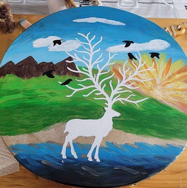 Am Sonntag den 30. Oktober starten wir um 10 Uhr und gestalten dann die Trommel. Vorlagen (Schablonen) Farben, Federn und Lederbänder sind im Preis inkludiert. Danach vollziehen wir gemeinsam das Ritual der Einweihung.