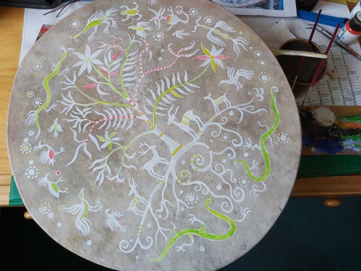 Individuelle Gestaltung und schamanische Einweihung der Trommel mit Energetikerin Martina Melkes.