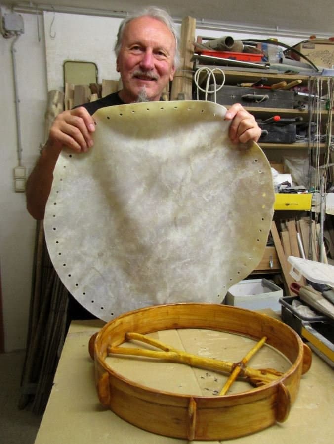 Wir bauen eine Schamanen Trommel die Rahmen und das Leder stellt Rudolf Faustmann selber her